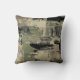 Stylish throw pillow features an artistic abstract painting design in a sage green and black colour palette with sandy beige and tan accents. An artistic abstract painting design built on combinations of layered painting texture resulting in an interesting abstract painting pattern. The earthy neutral design elements with sage green highlights give depth and perspective to the overall design.