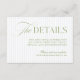 This elegant wedding enclosure card features soft sage green and light blue stripes, paired with timeless serif typography and delicate script accents. Perfect for sharing your wedding website, RSVP instructions, travel details, or accommodation info with your guests. Fully customisable — simply update the text to suit your needs.