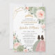 Sage Green Blush Floral Gold Quinceañera Twins Invitation