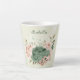 Beautiful romantic latte mug featuring sage green and blush pink flowers and some pretty leaves .