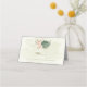 Beautiful romantic wedding place card featuring sage green and blush pink flowers and some pretty leaves .