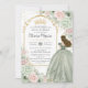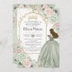 Sage Green Blush Pink Floral Princess Quinceañera Invitation