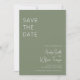 A modern boho Save the Date card that features a sage green colour palette and minimalist design.