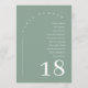 This simply elegant modern minimalist table number card features a simple serif font in an arch shape on a sage green background. You can personalise/customise the table number card and guests names to anything you like.