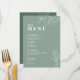 This menu is chraacterised by boho style, floral artwork, and sage green colour, with a mix of different font styles, often in different sizes, to create a unique, eclectic look that makes these menus a natural aesthetic.