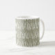 A coffee mug with a delicate pattern of ivory ferns on a sage green background. Perfect for a hostess gift.
