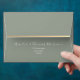 Elegant sage green wedding envelope with watercolor eucalyptus greenery and a chic gold stripe accent. Features botanical liner and custom return address. A perfect match for your modern greenery-themed suite. Need a custom version or matching item? Contact me at bpkolman@gmail.com — I'm happy to help!