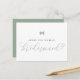Pretty Parisian theme bridesmaid proposal card. Ask family and friends to be part of your wedding with this personalised "Will you be my bridesmaid" card. It features a sage green bow and elegant script. Personalise by adding a name and message