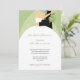 Cute bridal shower invitations, with an illustration of a bride and groom on a sage green swirl background. Get the matching postage, wedding favour labels, and mailing labels. Contact us for custom colours to match your wedding colours - PMCustomWeddings@hotmail.com