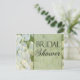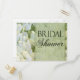 White hydrangea with sage green pin stripe accent and Bridal Shower in script. Easily add bride's name to the front - details on the back - and pop in the mail.