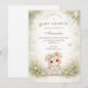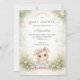 A soft and elegant baby shower design featuring an adorable bunny surrounded by delicate sage green florals and airy botanical greenery. Gentle watercolor textures, small butterflies, and neutral floral details create a calm woodland nursery aesthetic with a refined storybook feel. The natural sage palette gives the design a timeless, gender-neutral look that feels fresh and serene. Perfect for a sage green themed baby shower with a sweet woodland atmosphere.