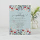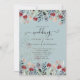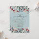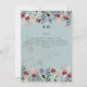 Featured here are pretty watercolor wild flowers in colours burgundy, blue andsage green leaves. The text is overlayed across the design which is opaque behind the text.