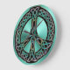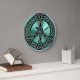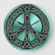 Sage Green Celtic Knot Peace Sign Clock. A muted green with lavender purple, blue, silver and gold highlights in an endless knot pattern in the shape of the classic peace sign. A neo-Celtic fantasy of peace and eaternal love. Celtic knots are a traditional Celtic art form, usually characterized by having no beginning and no end, that symbolize eternal love and the never-ending cycle of life. They have been found to be a favorite symbol in many cultures and civilizations around the world and with many practitioners of magic or mysticism today. The peace sign is a Universally recognized symbol of peace.