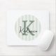 Sage Green Charcoal Custom Striped Circle Monogram Mouse Pad