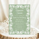 Sage Green Mexican Talavera Cielito Lindo Baptism and First Birthday Invitation Hermoso Carino themed - Celebrate the baptism of your little one with this beautiful mexican art talavera inspired design for a First Birthday and Baptism. With traditional Mexican Talavera tile colour palette of cool, earthy and natural sage green and bright white. Script calligraphy text and classic Mexican style swirls make this a unique, cosy and festive bautizo invite. Perfect for a Mexican Fiesta Baptism Celebration and First Birthday. Customise this editable bridal shower invitation with your own event details. Available to order in printable format or instant digital download, easy to send via email, text or social media.