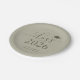 Simple and elegant graduation party plate featuring typography text that says "class of 2025" in script font with a graduation cap illustration. The background is sage green.