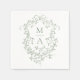 Sage Green Classic Floral Crest Monogram Wedding Napkin