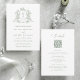Sage Green Classic Floral Crest Wedding All in One Invitation