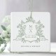 Sage Green Classic Floral Crest Wedding Photo Ceramic Ornament