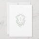 Elegant sage green floral wedding invitation with a floral crest and monograms on the back.
