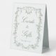 Classic sage green French floral frame "cards and gifts" table tent sign with monograms. For more advanced customisation of this design, please click the DESIGN TOOL BUTTON above! Matching items are also available.