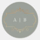 sage green classic gold crest monogram wedding round sticker