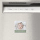 This fridge magnet features a contemporary script styled font "Hello, Baby" at the bottom edge of the your own baby photo above a sage green background with your baby's name and birth date in a modern clean crisp printed white font.. ,