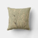 Modern throw pillow features an artistic composition with soft creamy ivory hues on a simple sage green background. Inspired by nature, this elegant watercolor composition is built on a layered design of branches with highlights and shadows that give depth and perspective in the overall design.