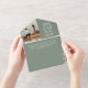 Sage Green Crest Monogram 3 Photo QR Code Wedding All In One Invitation