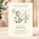 Sage Green Cute Dinosaur 4th Birthday Invitation