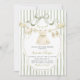 Celebrate the joyful arrival of a baby girl with this elegant “It’s a Girl” Baby Shower Invitation, featuring a delicate daisy clothesline with baby dress, bonnet, and shoes, framed by soft sage green stripes and a graceful ribbon accent.