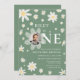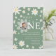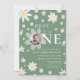 Sage Green Daisy First 1st Birthday Photo Invitation