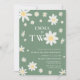 Sage Green Daisy Second 2nd Birthday Two Invitation