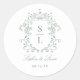 Sage Green Elegant Baroque Crest Monogram Wedding Classic Round Sticker