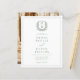 Introduce your wedding with a stunning sage green invitation featuring an elegant floral crest monogram. The soft sage green hue exudes natural beauty and serenity, while the floral crest adds a timeless, sophisticated touch. Perfect for couples seeking a refined and graceful design, this invitation blends classic charm with modern elegance. The personalised monogram makes it uniquely yours, setting the tone for an unforgettable celebration. Ideal for garden or formal weddings, this invitation beautifully reflects your special day.