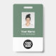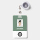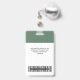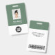 Easily personalise this Black and White Custom Employee Name Badge with Photo, Scan Bar Code and business logo. A simple business design in dark sage green and white standard colours fully customisable in front and back sizes, sans-serif basic and modern fonts and a professional and clear look. Avaiable with lanyard, metal clip or with retractable. No minimum order.