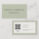 Promote your esthetician services with this modern sage green business card featuring a QR code for easy access to your booking link, portfolio, or contact page. The soft sage tone creates a soothing, natural feel — perfect for spa professionals, skincare specialists, and beauty therapists. Clean typography and a minimalist layout ensure a refined, print-ready finish that enhances your brand’s calm professionalism.
