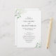 Elegant botanical Wedding Program with a simple layout featuring a sprig of eucalyptus greenery in a lovely shade of sage green in the upper left corner and lower right corner. A simple and modern choice perfect for a spring or summer wedding.