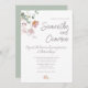 Sage green eucalyptus soft pink floral details and sage green in the back of card. Elegant typography in light grey. Easy to personalise your details. Perfect for spring or summer wedding.