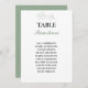 Direct your guests with style using this sage green eucalyptus wedding table seating card. Designed with an elegant mix of serif and script fonts, this card features a delicate line art eucalyptus sprig above the table number and guest list. Perfect for rustic, botanical, or garden-themed weddings, this customisable seating chart card brings a polished, coordinated look to your reception decor.