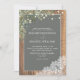 Ooh, we're so happy with this traditional formal sage green eucalyptus botanical, rustic wedding invitation! Featuring hand lettered script typography, sage green eucalyptus watercolor florals, a honeyed barnwood texture, faux French Alençon lace, and warm, glowing string lights. Part of a wedding suite that we hope you love as much as we do: https://www.zazzle.com/collections/trendy_light_gray_rustic_wood_lace_floral_wedding-119389924642700932 Copyright Elegant Invites, all rights reserved.