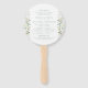 Discover our elegant bohemian spring/summer wedding program hand fans. Showcasing a sophisticated wreath intertwined with delicate white flowers, eucalyptus and greenery leaves, these fans add a touch of refined style to your wedding ceremony. Perfect for a unique and stylish classic botanical wedding celebration.
