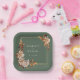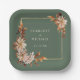 Sage Green Fall Paper Plate. Serve up style with these paper plates decorated in a stunning floral and leaf motif in classic fall tones. Burnt orange leaves, beige dahlias, and rust-coloured roses rest against a soft sage green background, creating a tablescape that’s as beautiful as it is practical. Make every bite part of your autumn vision—customise your set now.
