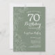 Sage Green Floral 70th Birthday Party Invitation. Minimalist modern design featuring botanical outline drawings accents and typography script font. Simple trendy invite card perfect for a stylish female bday celebration. Can be customized to any age. Printed Zazzle invitations or instant download digital printable template.