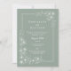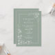 This all in one sage green wedding invitation features a floral frame with white modern elegant typography and a place on the back for details. The sage green and white color scheme and simple minimalist design makes this botanical wedding invitation perfect for spring summer and fall weddings with floral or garden themes.