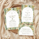 A sophisticated botanical design featuring rich green foliage and soft ivory blooms, framed within a timeless arched layout. The deep, nature-inspired tones bring a sense of depth and refinement, while the clean typography keeps the overall look elevated and effortless.