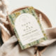 A sophisticated botanical design featuring rich green foliage and soft ivory blooms, framed within a timeless arched layout. The deep, nature-inspired tones bring a sense of depth and refinement, while the clean typography keeps the overall look elevated and effortless.