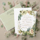 This elegant wedding place card features a soft sage green background paired with a delicate watercolor floral accent in muted ivory and greenery tones. The floral arrangement, positioned in the corner, adds a romantic and organic touch without overwhelming the clean, minimalist layout. A simple line provides space for guest names, complemented by a graceful script “table” label for added charm and organization. The folded tent style creates a polished, professional presentation, perfect for guiding guests to their seats with ease. Ideal for garden, rustic, or nature-inspired weddings, this place card blends understated beauty with timeless sophistication.
