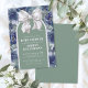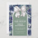 A cute and elegant gender neutral baby shower theme featuring a soft sage green background on both sides for a calm, modern look. The design includes a charming watercolor bow paired with an arch detail, accented by navy blue floral artwork for a refined, timeless feel. The navy florals add contrast while keeping the overall palette balanced and versatile.