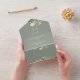 All-in-one wedding invitation featuring beautiful floral greenery, elegant typography, and monogram initials on a sage green background. The invitation includes a perforated RSVP card with your wedding website QR code. Designed by Thisisnotme©